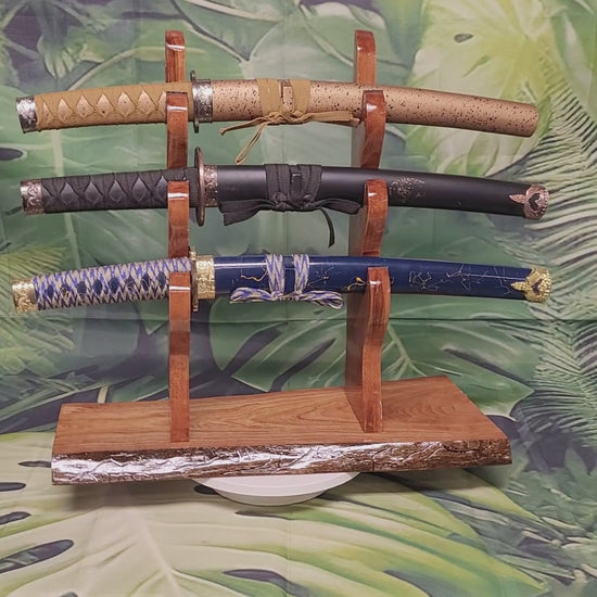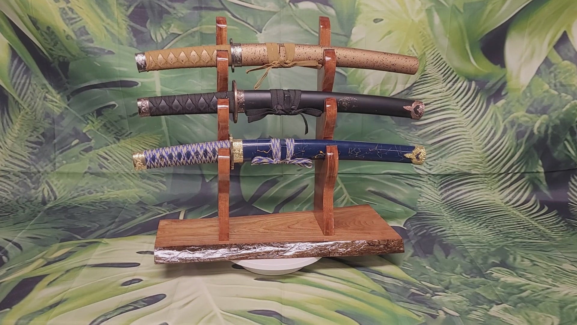 The Rustic 3 Tier Black Walnut Japanese Samurai Sword Display Stand I received was way beyond my expectations. It's so rare to find such care and attention to detail - in real - beautiful wood! The finish is to perfection - I could not see even a single blemish on the finish coat. The smell coming out of the box is just wonderful - you know you have something special. Plus, a nice little fee gift thrown in. Packing was beyond great. 100% positive experience across the board and I have told my collector friends about Walker Wood.
