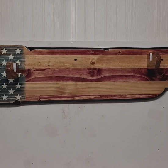 The package arrived well wrapped and included hardware and instructions. One of the bullet-style mounts had broken completely off and had to be epoxied back together. Another criticism is the style is that of Old Glory, but with an EGA in the star field, which turned out nicely. The stripes, however appear weathered, a nice touch, but barely discernable from the background. Overall, it's a nice piece, but a bit overpriced for what I received. Seeing what I received, I would place the value closer to $200, rather than just over $300.